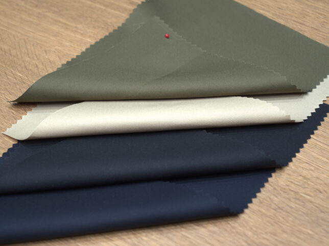 オリーブは80双高密度コットン100%。オリーブ陽光の下では華やかに、曇天では渋く映える。